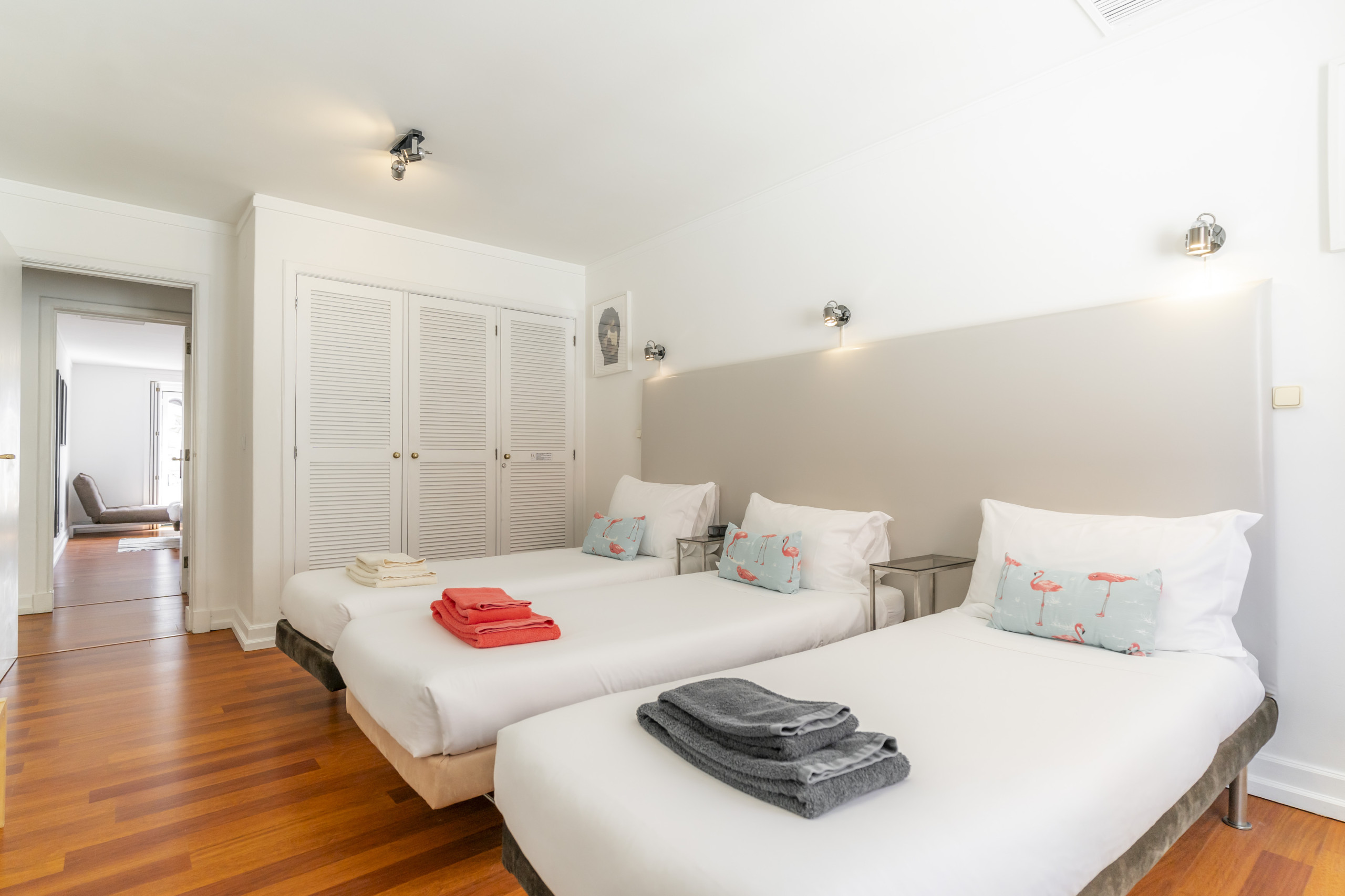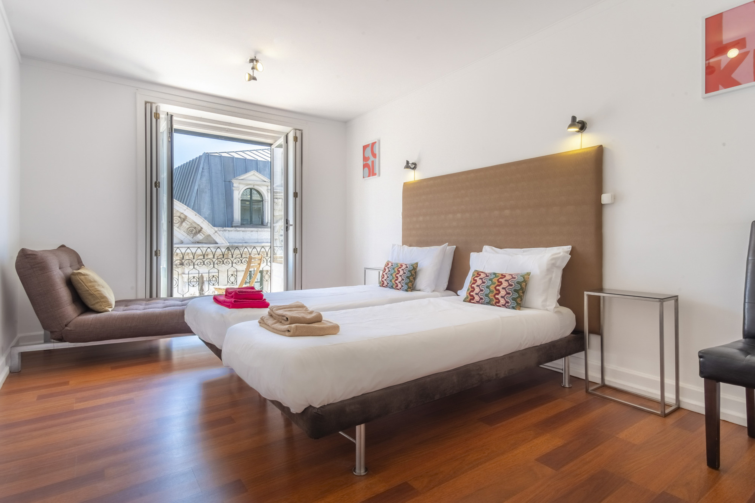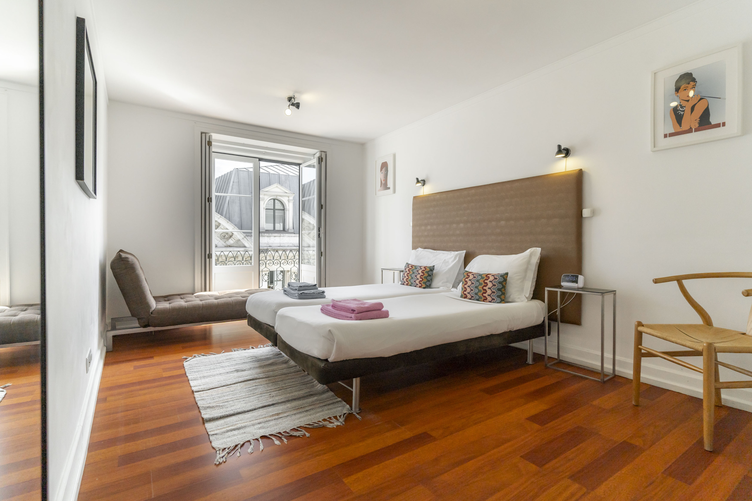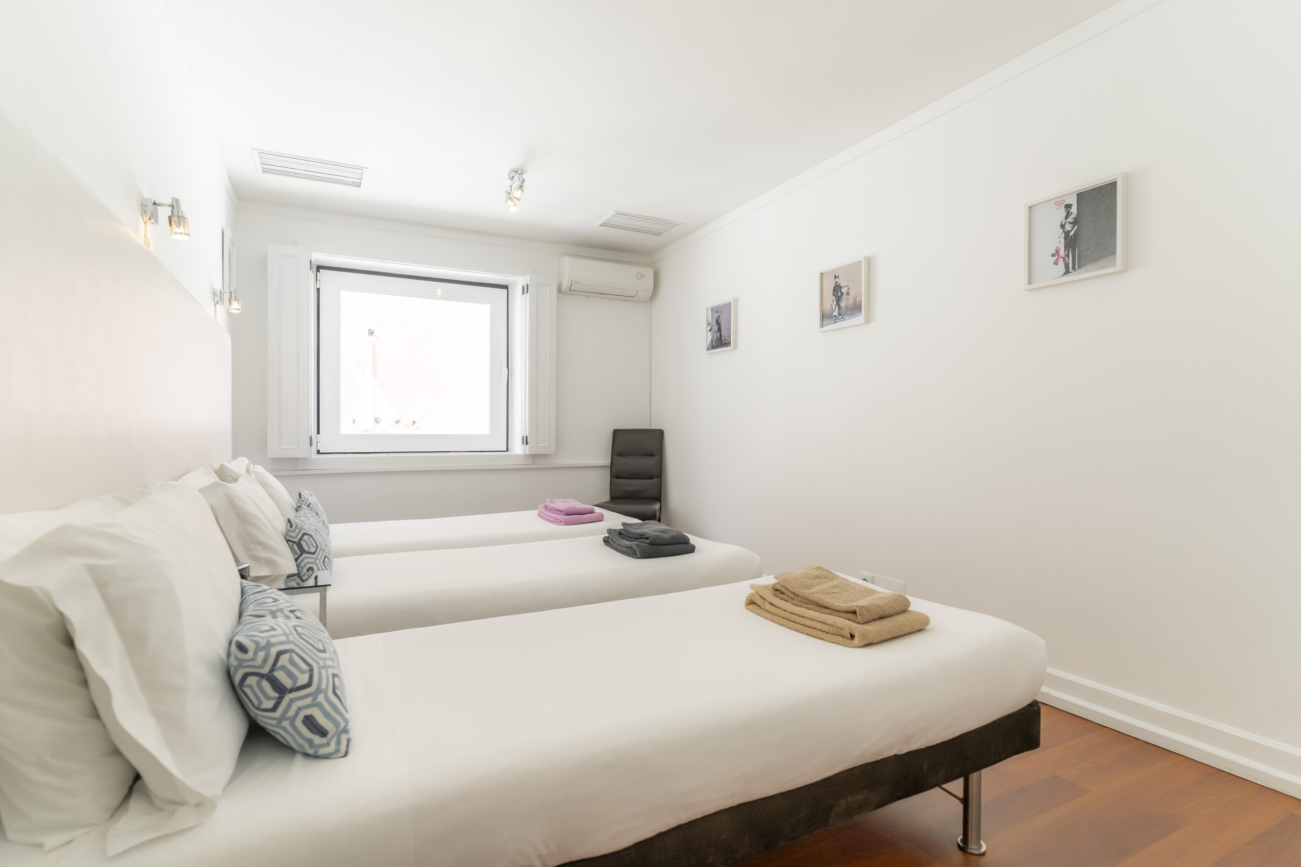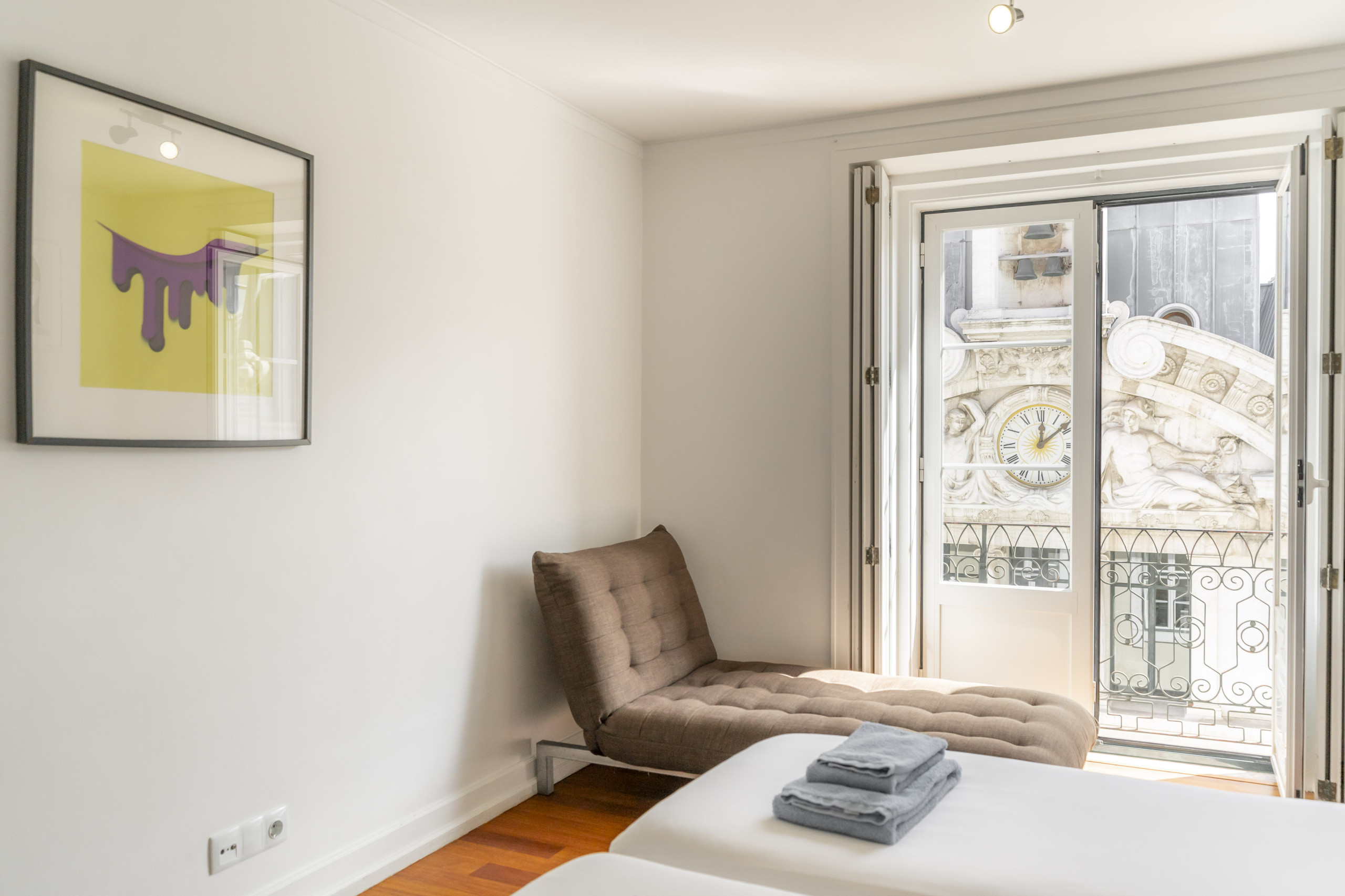 Welcome to LV Premier Chiado Apartments - CH2, a spacious 3BR / 2BR apartment and one of our most sought-after properties. Located in a building with 9 premium LV Premier apartments and two elevators, it is popular among large groups and families. The apartment features a long balcony with views of Armazéns do Chiado, the Santa Justa elevator, and of course, the lively Rua do Carmo. The Carmo Convent Museum is just a few minutes away, using the Carmo staircase gardens behind the building. This is a truly central location, with all amenities, attractions, restaurants, and shops at your doorstep. The apartment has air conditioning, modern interiors, and double-glazed windows. LV Premier Chiado Apartments - CH2 can accommodate 8 people in the bedrooms and a maximum of 2 extra guests on the sofa or folding beds.The living room has access to the balcony, dining area, and fireplace. The apartment also has a spacious kitchen, which is, naturally, fully equipped. Both bathrooms have a bathtub or shower. The LV Premier includes soft bath towels and quality toiletries for your first day.The CH building has a beautiful traditional facade, but was completely reconstructed recently. The apartment has air conditioning and heating and is decorated with contemporary decor and a neutral palette.Please note: Check-in between 10 PM and 8 AM - 60 euros additional. Stays longer than 9 nights include weekly cleaning. You can park the car about 50 meters away from the property. There is paid public parking / garages 5 minutes walking distance. When the number of booked guests exceeds the number of beds, we offer folding beds or a sofa bed. These can be set up in the bedrooms or living room. WiFi 500Mb8941/AL