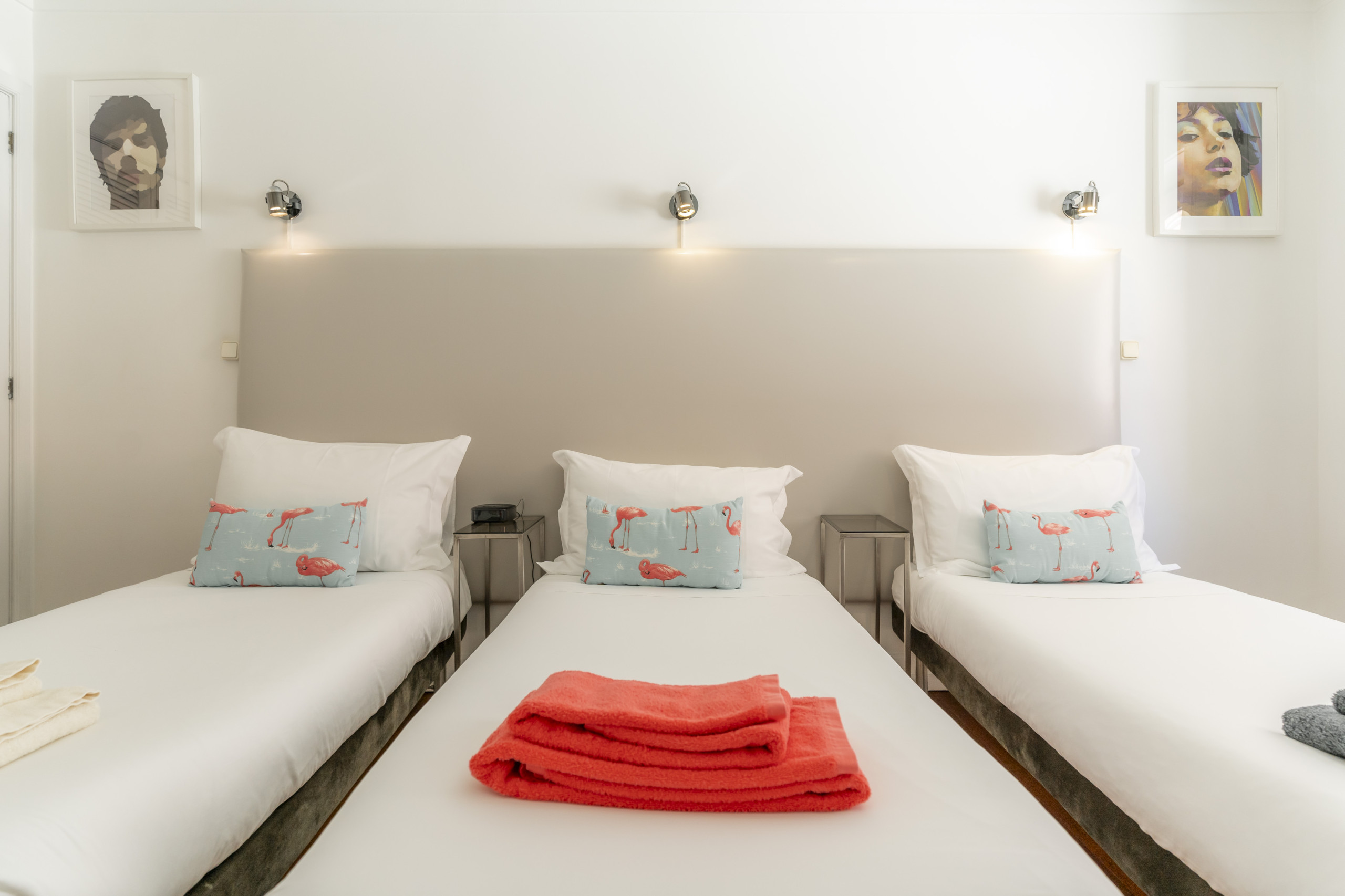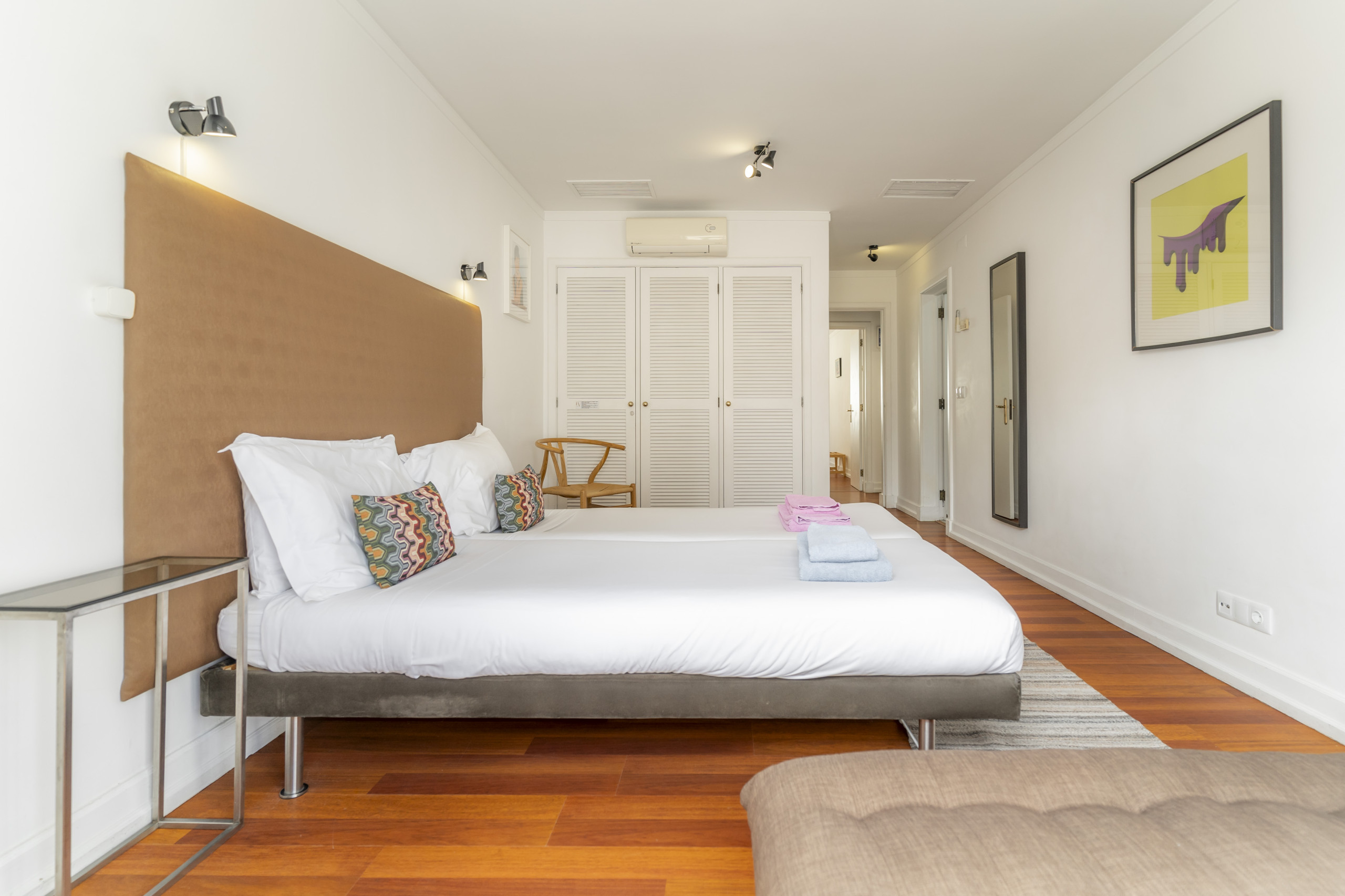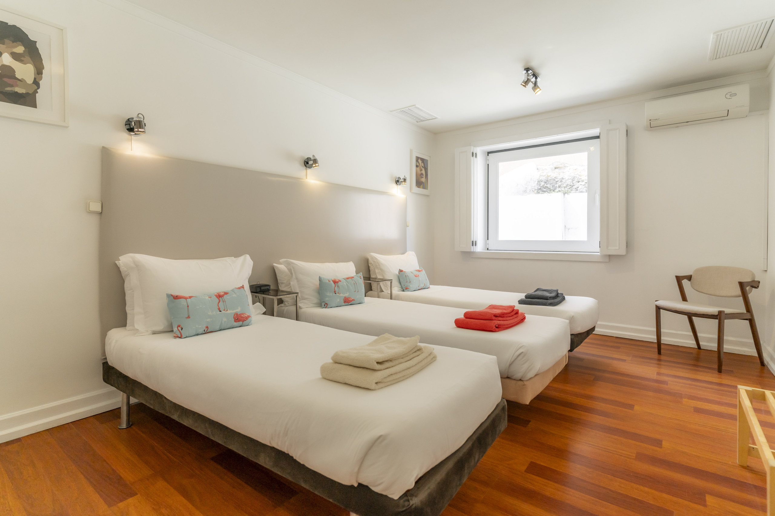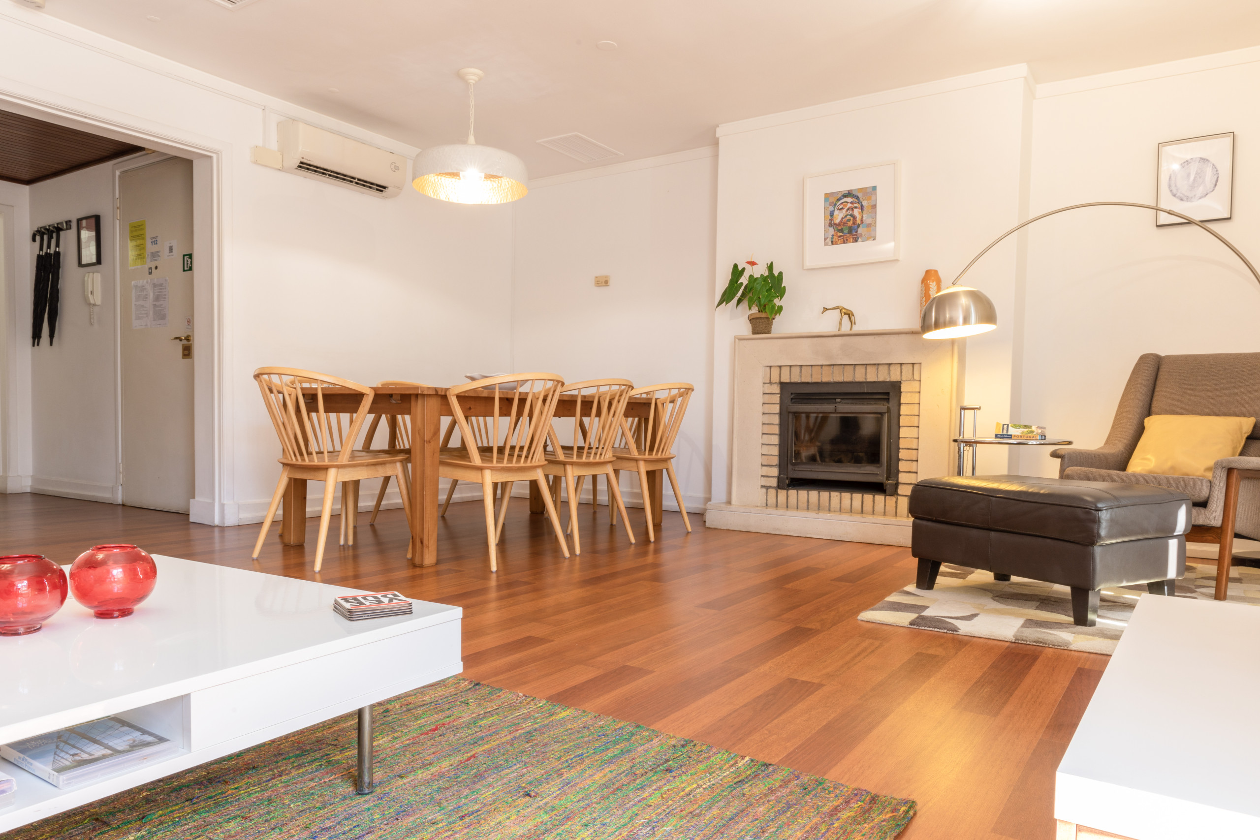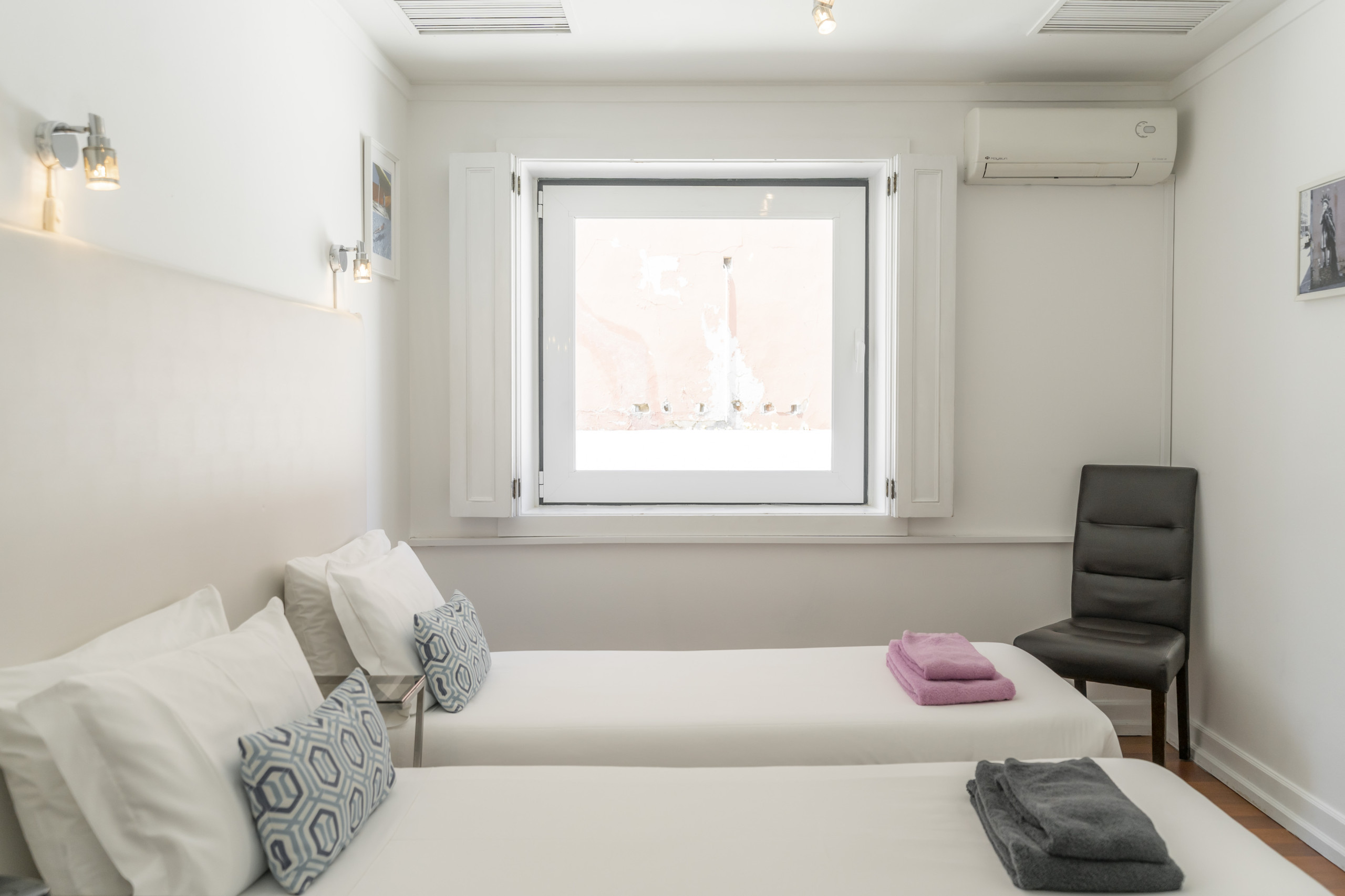 Welcome to LV Premier Chiado Apartments - CH2, a spacious 3BR / 2BR apartment and one of our most sought-after properties. Located in a building with 9 premium LV Premier apartments and two elevators, it is popular among large groups and families. The apartment features a long balcony with views of Armazéns do Chiado, the Santa Justa elevator, and of course, the lively Rua do Carmo. The Carmo Convent Museum is just a few minutes away, using the Carmo staircase gardens behind the building. This is a truly central location, with all amenities, attractions, restaurants, and shops at your doorstep. The apartment has air conditioning, modern interiors, and double-glazed windows. LV Premier Chiado Apartments - CH2 can accommodate 8 people in the bedrooms and a maximum of 2 extra guests on the sofa or folding beds.The living room has access to the balcony, dining area, and fireplace. The apartment also has a spacious kitchen, which is, naturally, fully equipped. Both bathrooms have a bathtub or shower. The LV Premier includes soft bath towels and quality toiletries for your first day.The CH building has a beautiful traditional facade, but was completely reconstructed recently. The apartment has air conditioning and heating and is decorated with contemporary decor and a neutral palette.Please note: Check-in between 10 PM and 8 AM - 60 euros additional. Stays longer than 9 nights include weekly cleaning. You can park the car about 50 meters away from the property. There is paid public parking / garages 5 minutes walking distance. When the number of booked guests exceeds the number of beds, we offer folding beds or a sofa bed. These can be set up in the bedrooms or living room. WiFi 500Mb8941/AL