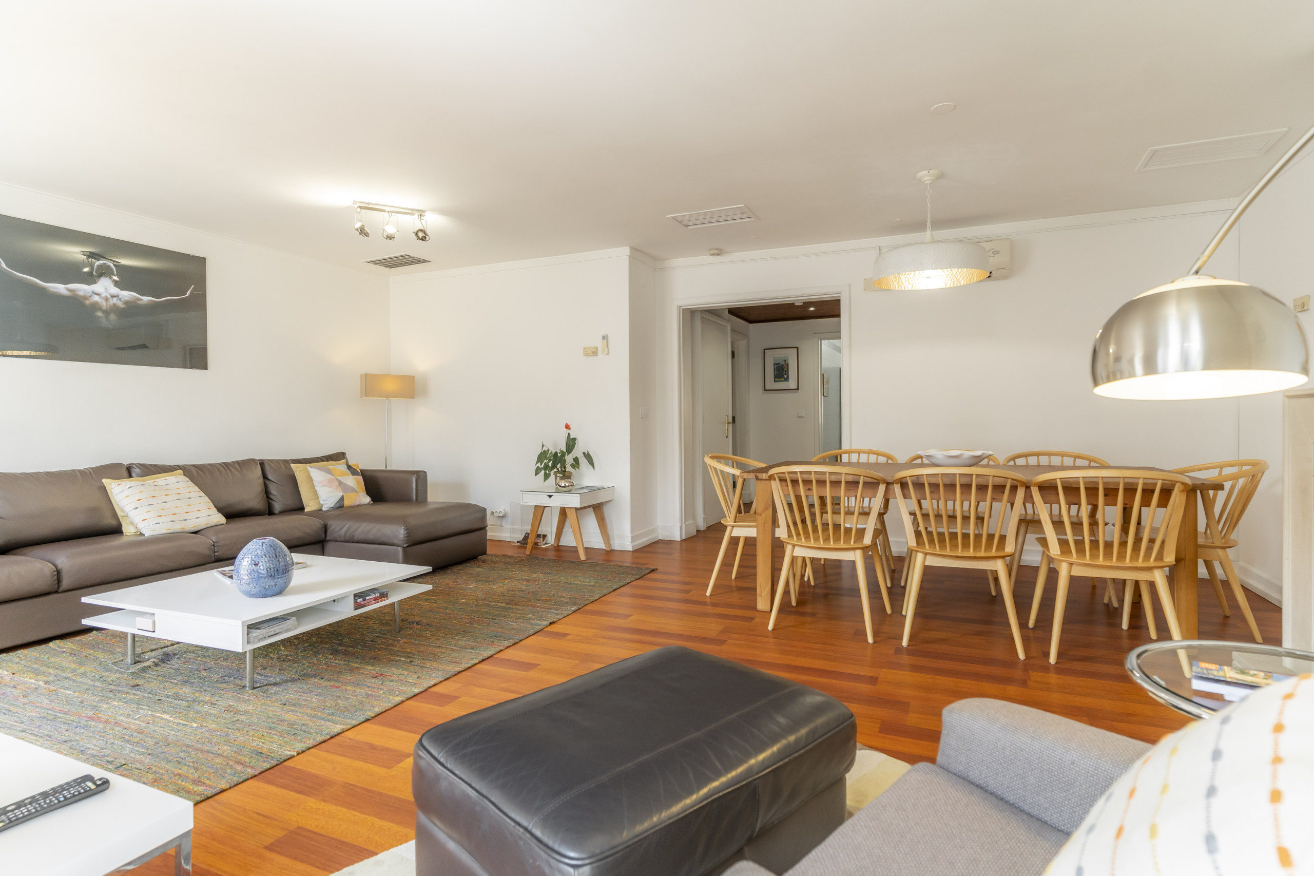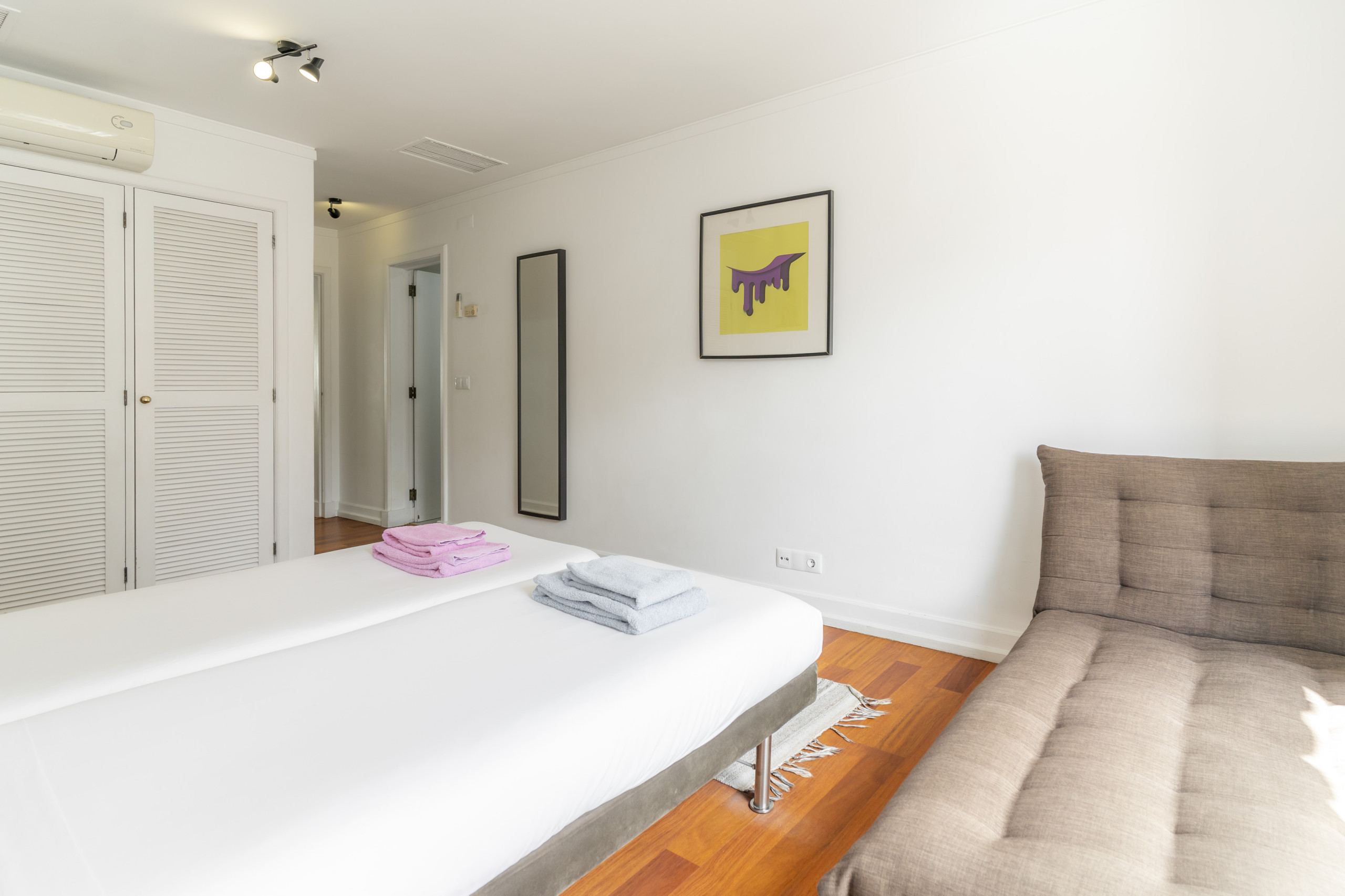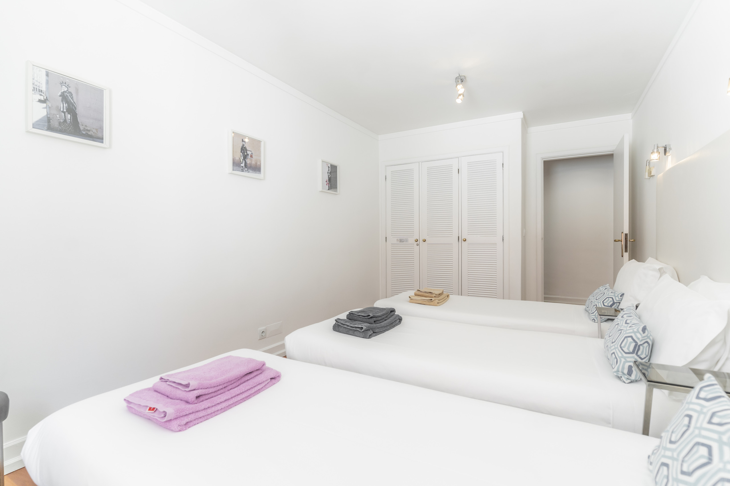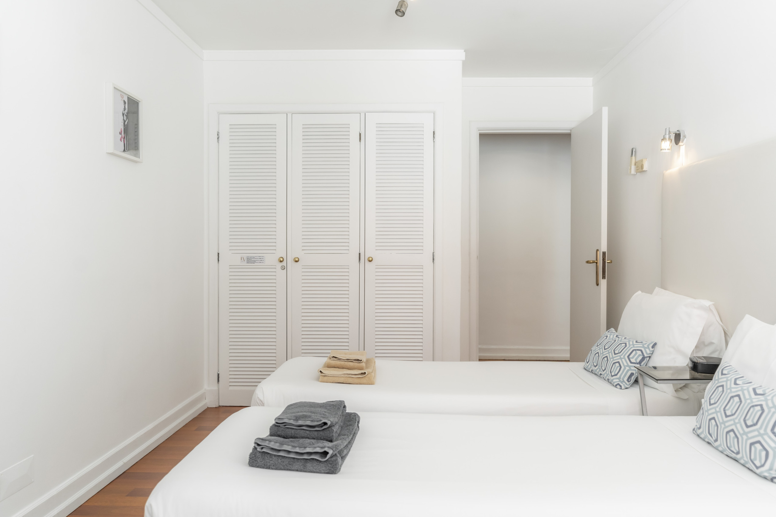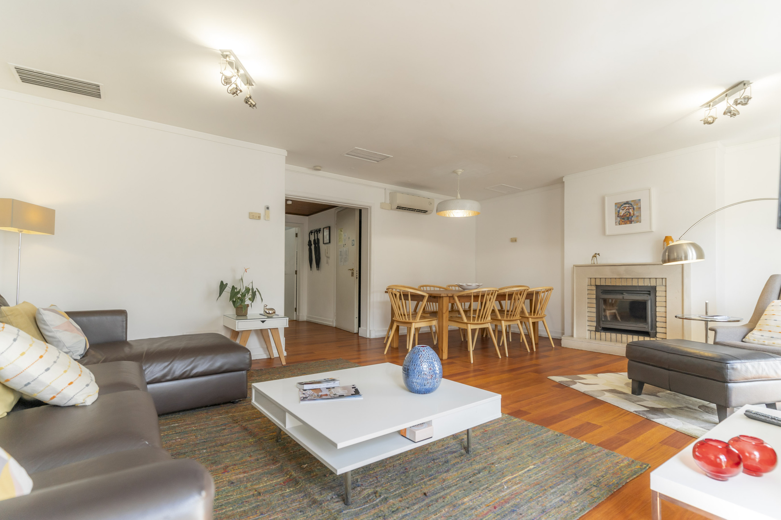 Welcome to LV Premier Chiado Apartments - CH2, a spacious 3BR / 2BR apartment and one of our most sought-after properties. Located in a building with 9 premium LV Premier apartments and two elevators, it is popular among large groups and families. The apartment features a long balcony with views of Armazéns do Chiado, the Santa Justa elevator, and of course, the lively Rua do Carmo. The Carmo Convent Museum is just a few minutes away, using the Carmo staircase gardens behind the building. This is a truly central location, with all amenities, attractions, restaurants, and shops at your doorstep. The apartment has air conditioning, modern interiors, and double-glazed windows. LV Premier Chiado Apartments - CH2 can accommodate 8 people in the bedrooms and a maximum of 2 extra guests on the sofa or folding beds.The living room has access to the balcony, dining area, and fireplace. The apartment also has a spacious kitchen, which is, naturally, fully equipped. Both bathrooms have a bathtub or shower. The LV Premier includes soft bath towels and quality toiletries for your first day.The CH building has a beautiful traditional facade, but was completely reconstructed recently. The apartment has air conditioning and heating and is decorated with contemporary decor and a neutral palette.Please note: Check-in between 10 PM and 8 AM - 60 euros additional. Stays longer than 9 nights include weekly cleaning. You can park the car about 50 meters away from the property. There is paid public parking / garages 5 minutes walking distance. When the number of booked guests exceeds the number of beds, we offer folding beds or a sofa bed. These can be set up in the bedrooms or living room. WiFi 500Mb8941/AL